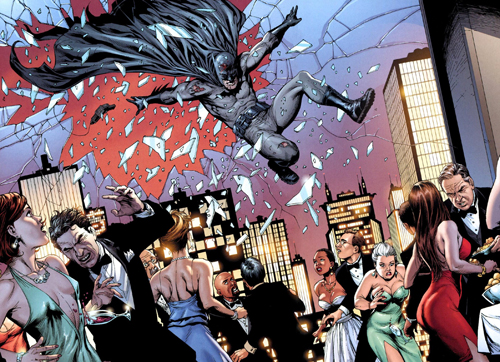 Eigentlich ergibt es keinen Sinn, dass Batman, der sonst eher davon profitiert, unbemerkt zu bleiben, so lautstark in Erscheinung tritt. Es sei denn, es handelt sich um einen Notfall. Aber manchmal kommt man nicht umhin, eine Lust am Vandalismus zu bemerken. Wie zum Beispiel in Penguin: Pride and Prejudice. Da kracht Batman nur durchs Oberlicht, um den Pinguin mal kurz was zu fragen. Dadurch sprengt der Held aber die Party und versaut dem Schurken die Laune. Batman ist ein Sadist, der am liebsten andere Menschen durch Fenster wirft (siehe The Dark Knight Returns) – natürlich nur, wenn sie es verdienen …