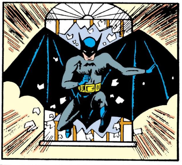 Das wiederum gibt zu denken: Denn was sagt es über Batman aus, dass er eine orientierungslose Fledermaus zum Omen und Vorbild nimmt? Kann es sein, dass die moderne Geschichte von Batman nur auf einem Missverständnis beruht? Dass die Fledermaus eigentlich ausdrückt, der Weg des Vigilantentums sei ein Irrweg? Liegt darin vielleicht die eigentliche Tragödie der Figur, dass sie sich eine Aufgabe aufbürdet, die von Anfang an zum Scheitern verurteilt ist? Wir wissen es nicht, was mit der Fledermaus passiert ist, nachdem sie das Fenster durchbrochen hat. Wir wissen nur, dass Batman in der Folge oft am Boden lag …