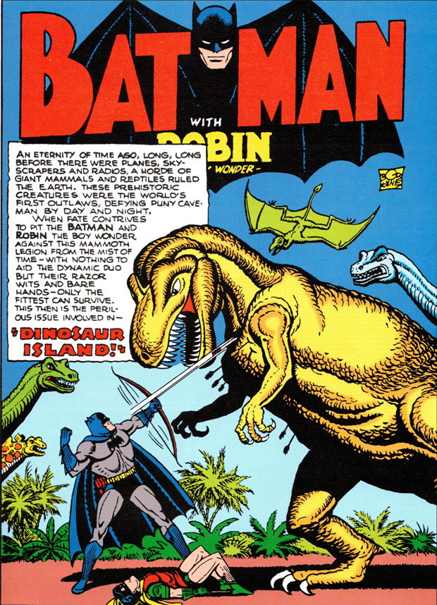 Dinosaur Island (Batman #35, 1946) ← Vorherige Nächste → Dinosaur Island (Batman #35, 1946) Batman mit Pfeil und Bogen gegen Dinosaurier (T-Rex)