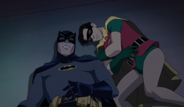 Warum gibt es diesen Film, der auf der Fernsehserie aus den 60ern basiert? Ganz unvermittelt kommt er nicht. DC hat bereits im Jahr 2013 eine Comicserie mit dem Titel Batman ’66 gestartet, die es mittlerweile auf 30 Ausgaben sowie drei Mini-Serien gebracht hat. Der Film ist die animierte Variante davon. Und auf den ersten Blick scheint alles da zu sein: der knallbunte Look, die absurden Situationen, die flachen Kalauer („There’s a bat moon on the rise“), die bemühten Alliterationen („the plan of planetary proliferation was prevented“). Was fehlt, ist aber der trashige Charme, der die Serie und den Film der 60er ausgemacht hat. Es macht einen großen Unterschied, ob man die Schauspieler in billigen Kostümen und Kulissen in einer Parodie herumhampeln sieht, oder nur gezeichnete Versionen davon. Der Animationsfilm wirkt zu sauber, zu glatt, zu steril – und vor allem ist er steif und fade. Der Animation fehlt die Seele. Das Gefühl hatte man schon bei The Killing Joke.