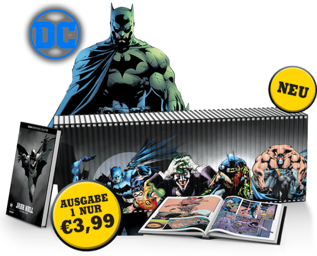 Nach seiner DC Graphic Novel Collection plant Eaglemoss, eine deutschsprachige Batman Collection nachzulegen. Sie beginnt mit dem ersten Band von Jahr Null (Zero Year) für 3,99 Euro, weitere Bände kosten 12,99 Euro. Zunächst sollte die Reihe im Januar starten, mittlerweile ist sie auf Sommer 2018 verschoben. [UPDATE: Sie erscheint ab 2019.] Angekündigt sind bisher: