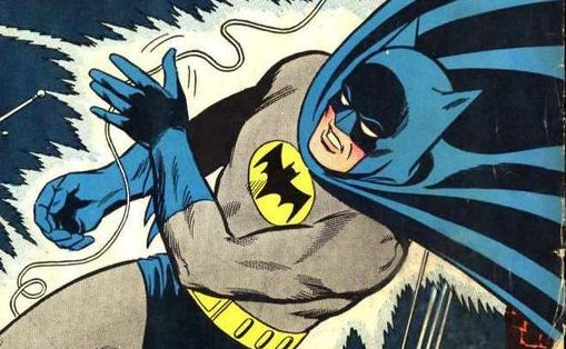 Batmans Kostüm kennt vier Farben: schwarz, blau und grau – und dann ist da noch ein Klecks Gelb. Der Gürtel war es schon von Beginn an. Und später auch das Logo auf der Brust. Ursprünglich war da nur eine schwarze Fledermaussilhouette auf grauem Grund – das ist das klassische Batman-Symbol. 25 Jahre lang ist es so gewesen, mit kleineren Abwandlungen.