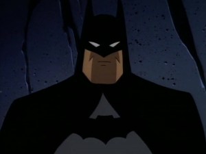 In Batman: The Animated Series prangte ebenfalls die gelbe Ellipse auf der grauen Brust, wenn auch in Rückblenden gezeigt wurde, dass Batman in seinen Anfangstagen nur die schwarze Fledermaus trug. In der dritten Staffel – The New Batman Adventures – kehrte man jedoch wieder zu einer großen schwarzen Fledermaus zurück.