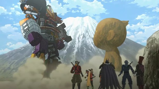 Nein, das ist kein Witz. Das passiert wirklich im Anime Batman Ninja. Zwischendrin fragt man sich, worin eigentlich der Sinn besteht, die Handlung im alten Japan spielen zu lassen, wenn man es auf hanebüchene Science Fiction anlegt. Aber sei’s drum. Vielleicht entspricht das ja dem japanischen Publikumsgeschmack. Genauso wie das kleine süße Äffchen, das Robin begleitet …