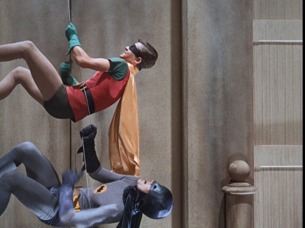 Einmal pro Folge müssen Batman und Robin den Bat-Computer benutzen oder sonst irgendein (explizit beschriftetes) Bat-Gimmick, von dem vorher nie die Rede war. Bathöhle, Batgürtel und Batmobil sind wahre Schweizer Taschenmesser. Einmal pro Folge gehen Batman und Robin eine Wand hoch. Und genauso zuverlässig tappen sie in eine Todesfalle, aus der sie sich in letzter Sekunde irgendwie befreien können – wobei das Wie so nebensächlich ist wie das Warum für die meist aufwendige Falle. Zugegeben: Batman und Robin haben eigentlich mehr Glück als Verstand und sind damit eigentlich nicht besser als die Polizei von Gotham, aber sie triumphieren, weil sie es immerhin versuchen.