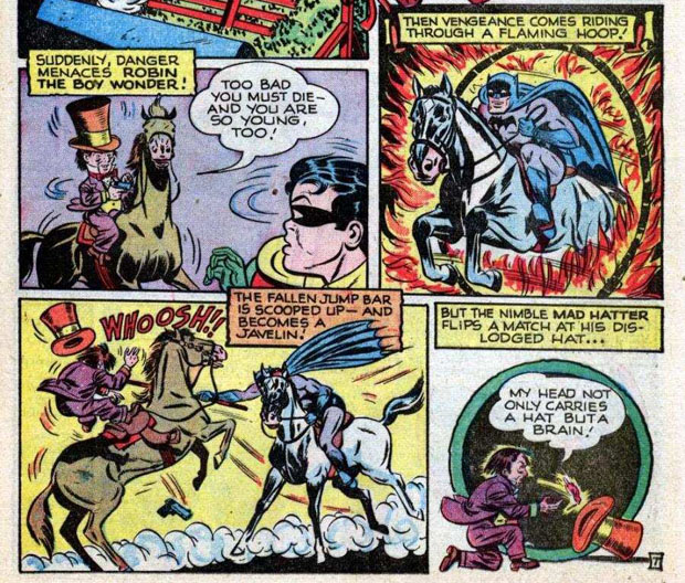 Bemerkenswert ist, dass der Verrückte Hutmacher einfach nur ein gewöhnlicher Schurke in ungewöhnlichem Kostüm ist. Das Alice im Wunderland-Thema spielt noch keine große Rolle. Der Hut-Fetisch ist nur angedeutet und von Gedankenmanipulation ist noch nicht die Rede. Das kommt später.