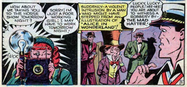 Die erste Mad Hatter-Story steckt voller Überraschungen. Die erste ist gleich auf der ersten Seite: Die Überschrift lautet „The Scoop of the Century“, aber zu sehen ist nicht der Verrückte Hutmacher, sondern die Fotografin Vicki Vale, wie sie zu beweisen versucht, dass Batman und Bruce Wayne dieselbe Person sind. Das ist der Spannungsbogen der Story, während der Mad Hatter nur kurioses Beiwerk ist. Aber genau das macht die Geschichte interessant.