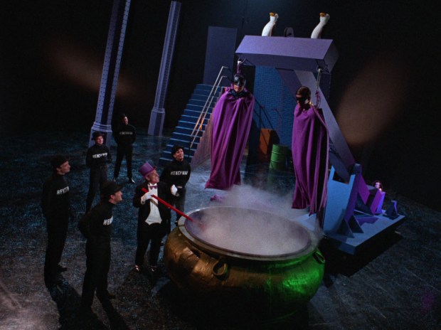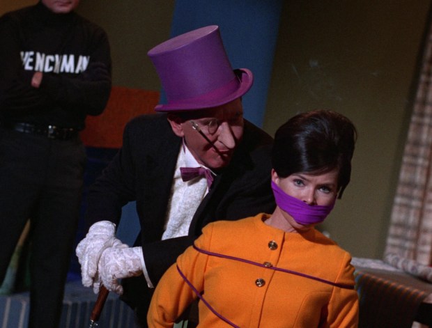 Bruce Wayne und Dick Grayson wollen mit O’Hara, Gordon und dessen Tochter Barbara (Yvonne Craig) in die Oper. Doch daraus wird nix, weil der Pinguin Barbara entführt, um sie zu heiraten – natürlich unter Zwang. Aber nicht etwa Liebe verschafft ihm den Sinneswandel. In der typisch verdrehten Logik von Batman-Schurken erhofft er sich davon Straffreiheit. (Fragt nicht.)