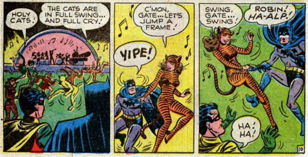 Das Finale findet im Tanzclub „The Cat and the Fiddle“ statt (benannt nach einem Volkslied). Batman gerät in eine Menge von Tänzern in Katzenkostümen – und muss sogar mittanzen. Überfordert ruft er Robin um Hilfe, der sich köstlich amüsiert. Danach ist es für Batman ein Leichtes, Catwoman zu fassen. Beim Showdown auf einer Riesengeige stolpert Catwoman, landet mit dem Hintern im Mittelbügel und bleibt dort stecken.
