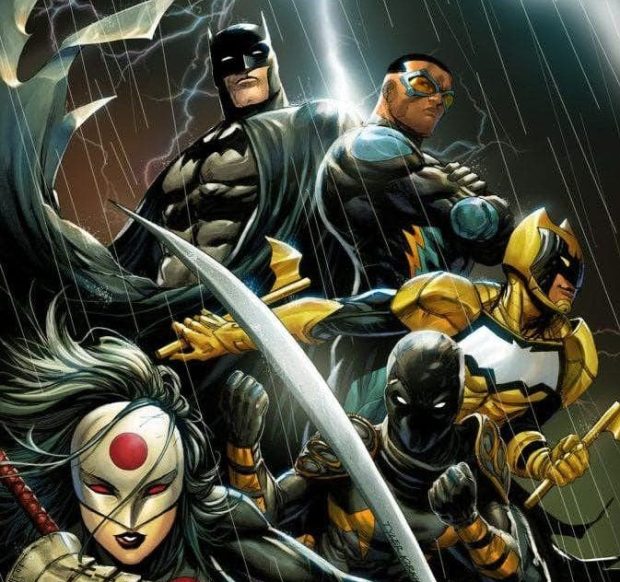 Batman and the Outsiders ist ein Konzept, das aus dem Jahr 1983 stammt. Damals hat Batman die Justice League verlassen, als sie ihm nicht helfen wollte, und hat sich ein eigenes Superheldenteam zusammengestellt. Schon da waren Black Lightning und Katana dabei. Mit Ausgabe 32 hat Batman das Team verlassen, doch später kamen sie mehrmals wieder zusammen, von 2007 bis 2009 (und eine Ausgabe 2011) gab es erneut eine Serie unter dem Titel.