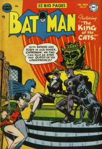 Der Mann trägt ein hautenges violettes Kostüm mit Katzenschwanz und fährt mit einem eigenen Kitty-Car davon. Bald darauf schlägt er immer wieder zu. Als das Dynamische Duo Selina Kyle dazu befragt, scheint sie darin involviert zu sein. Der King of Cats schickt ihr Blumen … Später stellen sie fest, dass sie tatsächlich von ihm weiß. Der Schurke will sie dazu überreden, seine Königin des Verbrechens zu werden. Batman geht dazwischen, doch Selina verhindert, dass er den King festnimmt. Sie versucht ihn lieber zu überreden, wieder ehrlich zu werden.