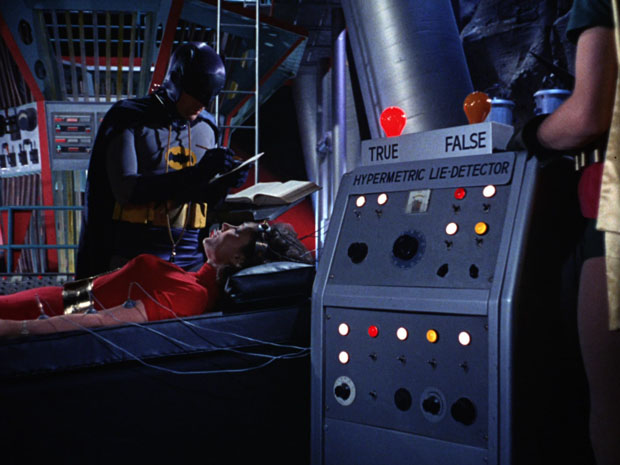 In einem Transporter finden sie die hübsche Komplizin des Bookworm. Batman und Robin unterziehen sie einem Lügendetektor-Test. Sie behauptet, der Bookworm wolle die Unabhängigkeitserklärung stehlen. Aber Batman durchschaut es: eine Falle. Er fährt trotzdem hin. Fragt sich nur, wozu dann der Aufwand mit dem Lügendetektor? Robin bleibt zurück mit der Schönen, beim Versuch, ihr ein Buch vorzulesen, wird er durch ein Gas ausgeknockt – englische Geschichte wirkt eben immer einschläfernd bei ihm.
