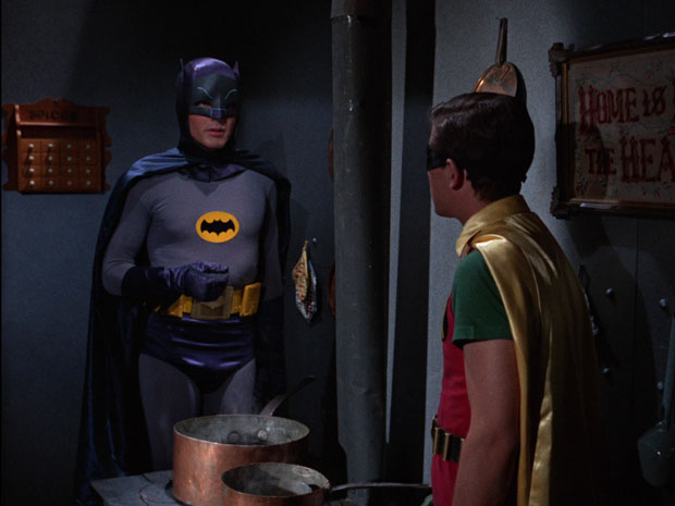 Doch als man glaubt, die Helden könnten verdampft sein, sind die bloß abgedampft zur Bibliothek, wo sie Bookworms Schergen zusammenschlagen. Der Anführer versteckt sich in einer Mülltonne. Batman und Robin trommeln ein wenig darauf herum …