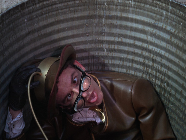 Bookworm lockt Batman und Robin an einen Ort, wo das Bild der Brücke an eine Hauswand projiziert wird. Doch wo kommt der Projektor her? Statt der Lichtquelle zu folgen, holen sie mal wieder die Batzooka heraus und machen einen Vertikalgang. Als sie am Projektor angelangt sind, scharen sich Bookworms Handlanger um sie. Doch vorher: Bitte Brillen abnehmen. Denk dran, Robin, mahnt Batman, schlage niemals einen Brillenträger!