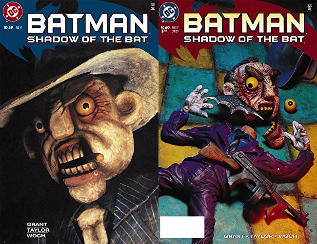 Der Bauchredner und seine Puppe Scarface, geschaffen von John Wagner, Alan Grant und dem Zeichner Norm Breyfogle, hatte seinen ersten Auftritt 1988 in Detective Comics #583-584 (nachgedruckt in Legends of the Dark Knight: Norm Breyfogle Vol. 1, 2015). Aber sein Charakter wurde erst allmählich entwickelt.