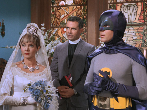 Die ganze Welt schaut zu. Batman bringt die zwei Worte „Ich will“ nicht übers Herz. Er wartet so lange, bis aus dem Nichts Alfred auftaucht – mit Tante Harriet. Alfred gibt sich als britischer Anwalt aus und behauptet, Batman sei bereits verheiratet. Er fälscht sogar eine Urkunde und droht, Marsha zu verklagen. Marsha flieht.