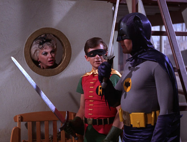 Bereit zum Duell: Batman und Robin mit Schwertern