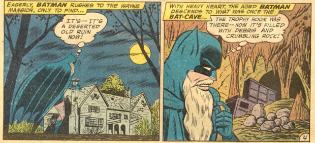 Die Geschichte nimmt in gewisser Weise The Dark Knight Returns und sogar Ben Afflecks Version vorweg. Niemand glaubt ihm, dass er Bruce Wayne ist. Wayne Manor ist eine verlassene Ruine, die Bathöhle ist leergeräumt. Der Alte muss sich als Batman erst beweisen. Als er Batman sieht, dass das Dynamische Duo in einem Planetarium von Ganoven festgehalten wird, versucht er sie zu retten, doch gerät selbst in Gefangenschaft.