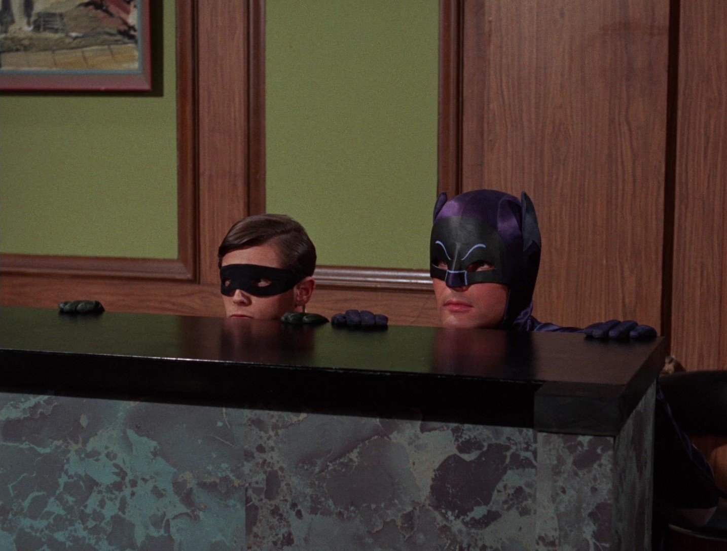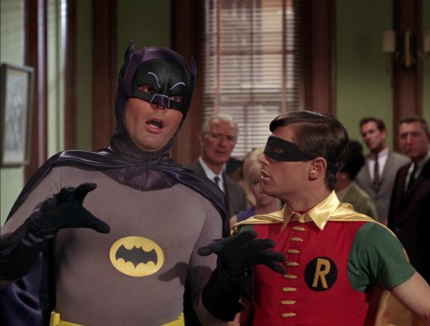 Batman und Robin sind ein Rätsel. Einerseits rennen sie sofort zum Telefon, wenn Commissioner Gordon dran ist, sie verlieren keine Zeit, zum Polizeihauptquartier zu fahren, deshalb ziehen sie sich auch beim Stangenrutschen um. (Und tauschen die Stangen!) Aber dann, wenn sie den Übeltäter sehen, wenn sie ihn einfach schnappen und zur Strecke bringen könnten, zögern sie plötzlich.