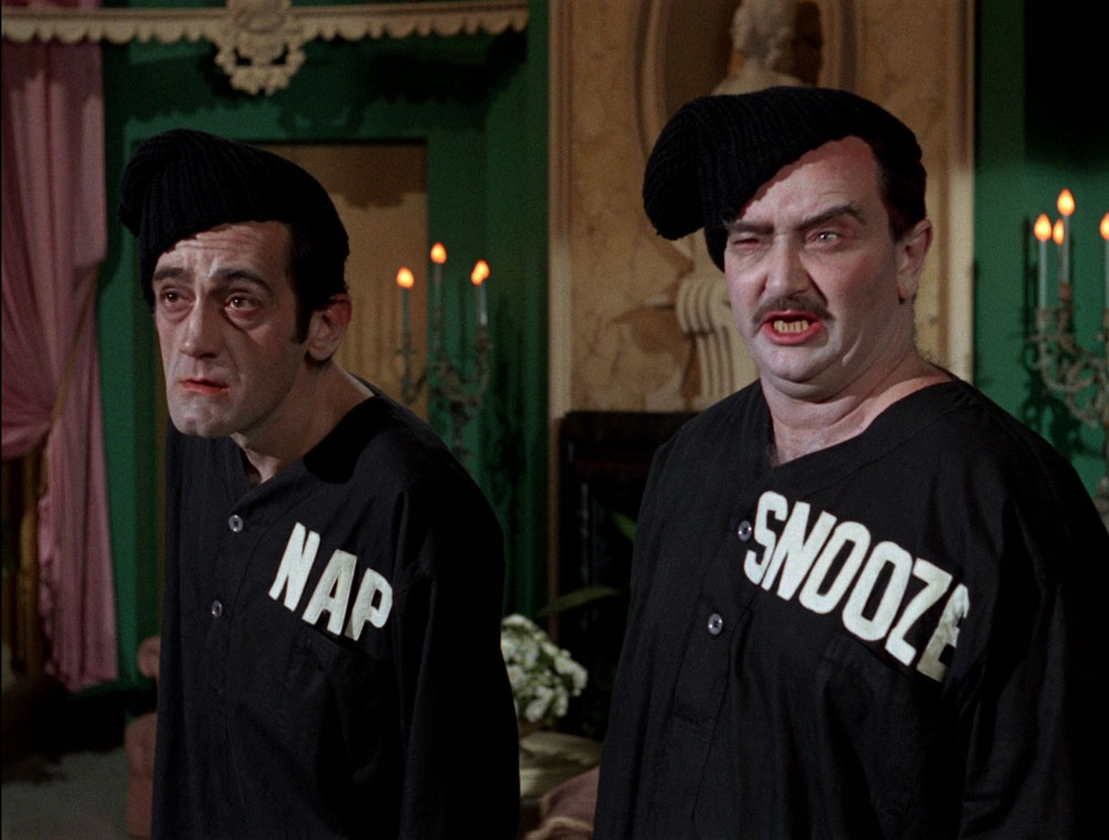 Dann sind da einige witzige Dialogzeilen und Situationen: Tante Harriett wundert sich endlich mal über das wiederkehrende Piepen aus Bruces Bibliothek. Offenbar ist ihr der Zutritt verboten, weshalb sie das rote Telefon noch nie gesehen hat. Alfred kann ihr ein Märchen auftischen von einer Hi-Fi-Anlage, die gewartet werden müsse. Als besonderes High-Tech-Gerät erweist sich mal wieder der Batcomputer, der als Antwort lange rote Fäden ausspuckt und dem Dynamischen Duo auf die Fährte von Ms. Spaghetti bringt.