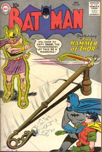 Die Batman-Hefte der 50er waren wahre Wundertüten: Sie enthielten drei Geschichten und manchmal waren sogar alle ganz interessant. So wie in Ausgabe 127, denn darin trifft Batman auf den nordischen Donnergott Thor – und zwar drei Jahre bevor Jack Kirby diese Figur für Marvel Comics erschafft (allerdings hat Kirby bereits 1957 eine Thor-Version bereits für DC geschrieben, in Tales of the Unexpected #16, aber das nur am Rande).