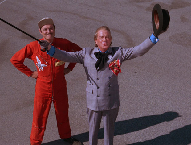 Denn der Schurke ist so lahm wie die Handlung: Ein steifer älterer Herr mit Fliege, der mit Rätsel-Luftballons operiert, ein Flugzeug stehlen will und in jeder Szene Shakespeare zitiert – selbstverständlich inklusive Stellenangabe, so will es ein altes Filmgesetz (auch wenn die Bibel zitiert wird, kennen alle Kapitel und Verse auswendig). Seine Tricks sind lauter Luftnummern.