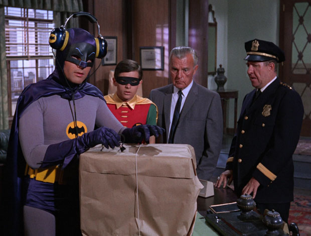 Highlight 3: Batman horcht einen Käfig mit dem Bat-Stethoskop ab und man fragt sich, wo Batman seine Ohren hat.