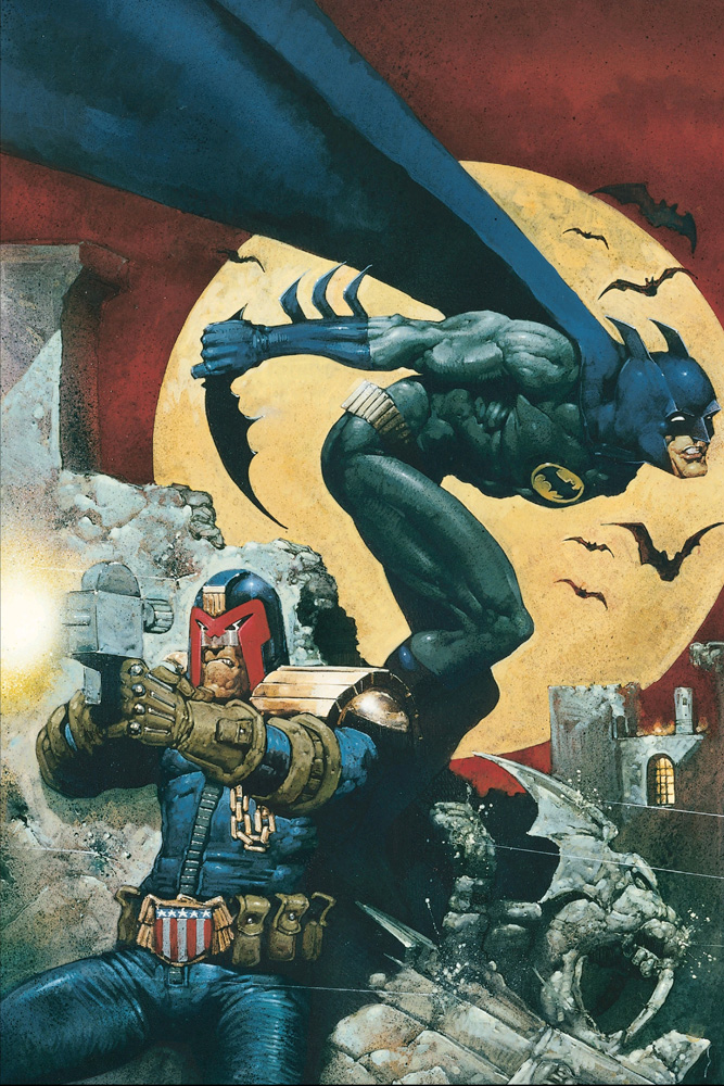 Bereits 1991 traf Judge Dredd auf Batman. Es war das erste Crossover der 90er mit einem Charakter von einem anderen Comicverlag und es folgten drei Fortsetzungen. Im ersten Teil, Judgement on Gotham, dringt ein böser Geist namens Judge Death in Gotham ein und tötet Menschen. Batman hält ihn vorläufig auf, wird dann aber in die Parallelwelt nach Mega-City One teleportiert, wo er auf den Cyborg-Schurken Mean Machine trifft und dann mit dem Gesetz in Form von Judge Dredd in Konflikt gerät.