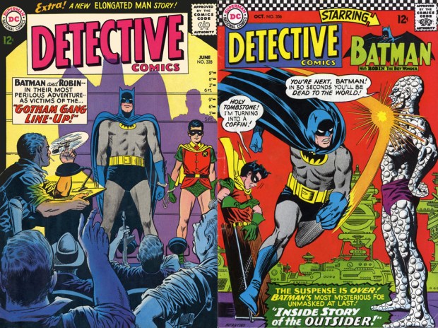 Das Jahr 1964 war eine Zäsur für Batman: Nachdem die Figur immer alberner wurde, sich ständig in alles Unmögliche verwandelte und immer abgedrehtere Abenteuer mit kuriosen Schurken erlebte, war auf einen Schlag Schluss damit: Batman und Robin wurden in der realen Welt verankert und wurden viel ernster (Detective Comics #327).