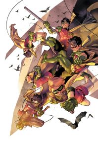 Vier Storys sind Dick Grayson gewidmet, eine Jason Todd (Red Hood), zwei Tim Drake, eine Stephanie Brown und zwei Damian Wayne, alles schön brav in chronologischer Reihenfolge. (Eine Preview mit Variant Covern gibt es bei CBR.)