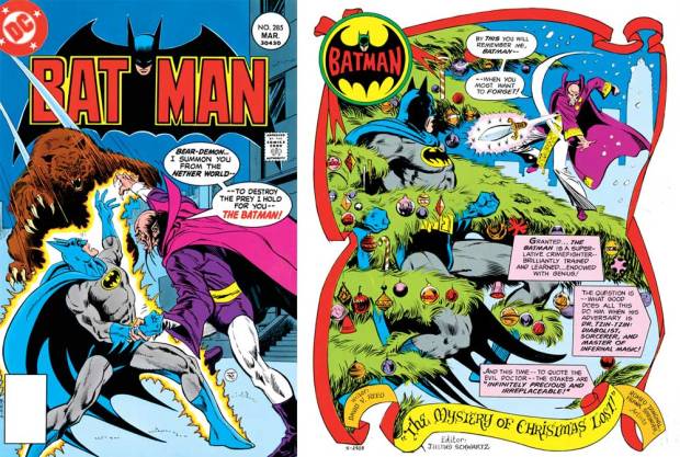 Batman im Bann des Weihnachtsbaums, ein Schurke mit Umhang wirft einen Dolch auf ihn – was ist denn hier los? Der Schurke ist Dr. Tzin-Tzin, Diabolist und Zauberer. Batman hatte schon mit ihm zu tun, jetzt sitzt der schwarze Magier im Knast von Gotham und entkommt, indem er goldene Ameisen mit Gedankenkraft manipuliert. Allerdings hinterlässt er noch einen Hinweis: „Merry Christmas to the Batman and Gotham City“. Eigentlich ganz nett von ihm – würde sich die Botschaft (geformt von den Ameisen) nicht in ein Fragezeichen verwandeln. Für Batman ist es klar: Tzin-Tzin hat Böses vor an Weihnachten. Nur was?