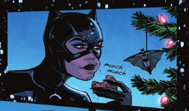 In der ersten Nacht schlägt Batman den Bauchredner und seine Sockenpuppe, dann Tweedledum und Twedledee, dann den Hutmacher (mit Hirschgeweih), dann Killer Croc, Calender Man – und noch ein paar andere, bis er in der zwölften Nacht – na, wem wohl? – Catwoman auf frischer Tat ertappt. Sie hat ihm all die Hinweise auf die Schurken geschickt, die er der Reihe nach einbuchten durfte, denn bekanntlich tut Batman nichts lieber als das – Feiertage hin oder her. Bonus: All die Tatorte verbindet er mit Erinnerungen an Catwoman.