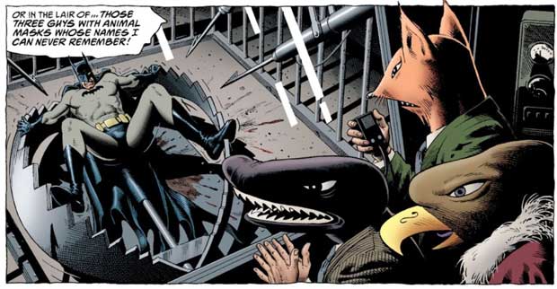 Ein Jahr später tauchte das Trio wieder im Comic auf, als Brian Bolland sie in einem Panel seiner Kurzgeschichte „An Innocent Guy“ zeichnete (Batman Black and White #4). Der Erzähler degradiert sie bloß als die drei Typen in Tiermasken, an deren Namen er sich nicht mal erinnern könne.