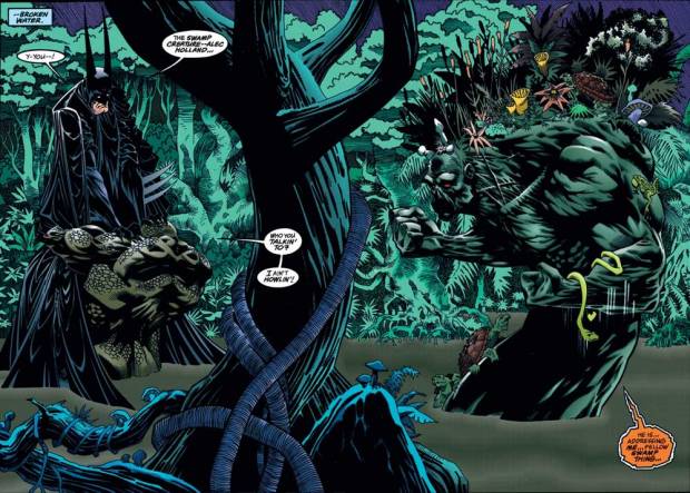 Batman ist nicht überzeugt. Swamp Thing lässt ihn dann Halluzinogene einatmen und versichert ihm, Waylon verändert zu haben und sich um ihn zu kümmern, damit er keine Gefahr mehr darstellt. Batman bleibt skeptisch: „Ist es gerecht? Und was ist gerecht?“ Waylon wurde ein Leben lang unfair behandelt, Arkham macht seinen Zustand nur noch schlimmer. Vielleicht ist der Sumpf doch die beste Lösung …