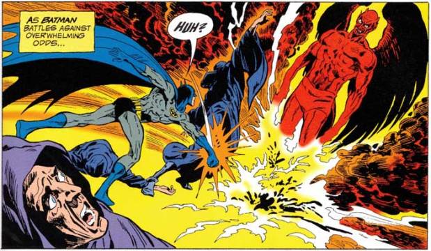 Bald schon passieren seltsame Dinge: Ein Gast von der Trauerfeier stirbt bei einem Ritualmord, im Haus der Birnams taucht ein Geist auf, dann sieht Batman, wie dort eine Gesellschaft den kleinen Enoch auf einem Teufelsthron verehrt. Batman wird ausgeknockt und dann noch im Schlaf von Enoch gequält. (Und das noch Jahre vor dem Film Das Omen! Aber dafür lässt Rosemarys Baby grüßen.)