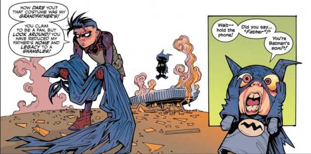 Eine DNA-Probe später stellt Bat-Mite fest, dass Damian Batmans Sohn ist. Er lässt dann Mutter Talia erscheinen und nach einer Umarmung zu Weihnachten wieder verschwinden. Auch wenn ich Bat-Mite hasse: Diese Story macht Spaß, auch weil sie witzig gezeichnet ist.