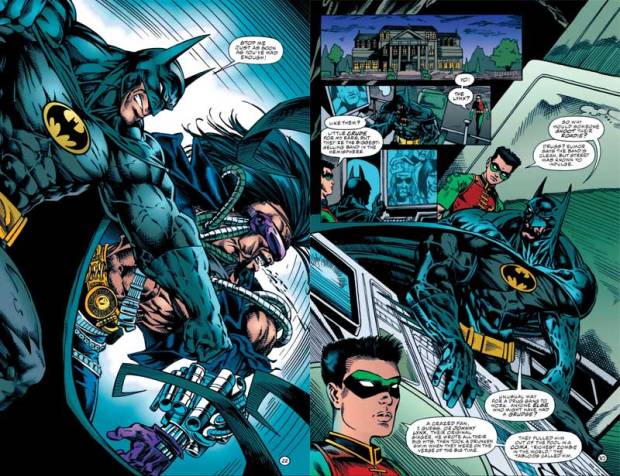 Batman und Robin können ihn nicht rechtzeitig aufhalten, auch ein Nahkampf endet unentschieden: Der Schurke, der sich Feedback nennt, enkommt. Wie die Geschichte weitergeht, erfahren wir in Batman Chronicles #2. (Was im Paperback Shadow of the Bat Vol. 4 nicht enthalten ist, wie überhaupt überwiegend darin Storys nur bruchstückhaft gesammelt werden.) Da hat Johnny den Manager der Band plötzlich als Geisel genommen und will ihn umbringen, Batman und Robin sind schon zur Stelle, um ihn aufzuhalten. Wie es dazu kam? Unwichtig. Batman liefert sich eine kurze Prügelei mit dem Cyborg, dann explodiert ein Gastank und Batman wird bewusstlos.