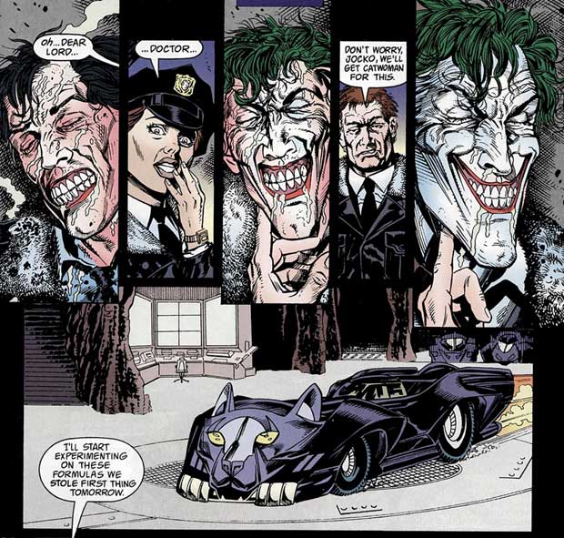 Bruce Wayne und Selina Kyle sind hier verheiratet und als Batman und Catwoman ein Verbrecherpaar. Bei einem Raub in einem Chemiewerk der Konkurrenz werden sie fast von der Polizei erwischt, der Beamte Jock Bozer fällt ins Abwasser und wird später zum Commissioner Joker. Jahrelang machen sich die beiden Schurken einen Spaß daraus, wertvolle Kunstschätze aus aller Welt zu stehlen, die sie in ihrer Höhle bunkern. Sie setzen einen Sohn in die Welt, den sie Richard Grayson Kyle Wayne nennen und der ihnen auf die Schliche kommt. Und unabsichtlich erschaffen sie auch den Riddler, als sie einen Reporter umzulegen versuchen. Als die beiden einen Tanker mit Gift in die Luft jagen und die Stadt erpressen wollen, kommt es zum tödlichen Showdown …