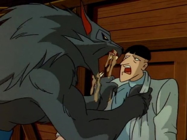 Die Story erinnert nicht von ungefähr an die gleichnamige aus Batman #255 (1974). Len Wein durfte sie für diese Episode recyceln – allerdings mit einigen Änderungen. Zunächst einmal trägt im Comic unser Werwolf in zivil den sprechenden Anthony Lupus. Die Umbenennung zu Romulus ist etwas subtiler, das erinnert nur entfernt an eine Wolfsmutter. Auch der Beginn ist anders: Da besteigt der Werwolf ein Hochhaus und greift eine Frau an. Die erotischen Untertöne hat man sich hier gespart. Das Finale ist weniger brutal in der Serie, aber läuft am Ende aufs Gleiche hinaus: einen Blitz als göttliche Intervention und die Flucht des Werwolfs in die Natur.