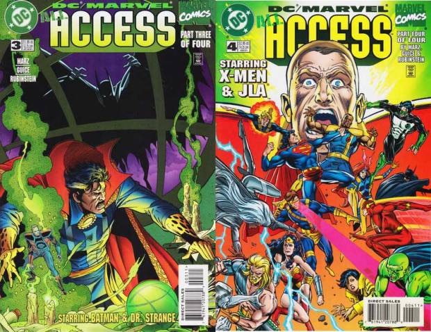 Nach dem Crossover-Event DC versus Marvel (1996) legten die beiden Verlage mit einer Fortsetzung nach. Im Vordergrund steht der Charakter Access (Axel Asher), der Wächter, der dafür sorgen soll, dass die beiden Welten getrennt bleiben und kein neues Amalgam-Chaos entsteht. Während unser Axel bei einem Date ist, wird er nach Metropolis gerufen, wo gerade Venom randaliert und sich mit Superman anlegt. Dann kommt auch noch Spider-Man zur Hilfe und während die beiden gegen Venom kämpfen, macht sich Access nützlich und holt eine Schallkanone – Problem gelöst. Doch das ist nur der Anfang …