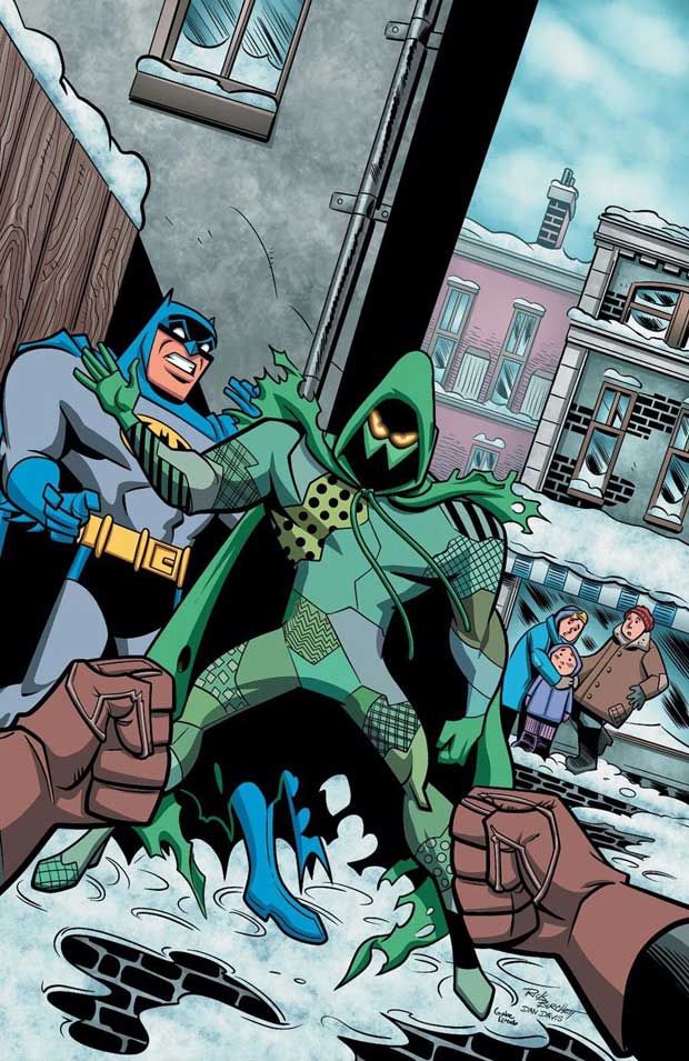 Schluss mit White Christmas! Die drei Schurken der Farben – Crazy Quilt, Doctor Spectro und Rainbow Raider – haben sich zusammengeschlossen, um – den Schnee zu färben! Aber keine Sorge: Batman wirft einfach einen Batarang und schaltet alle drei auf einen Schlag aus. Blue Beetle steht nur daneben und hat nichts zu tun.