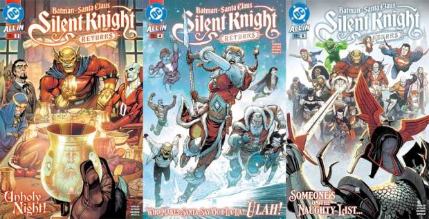 Mit Weihnachten hat diese Fortsetzung von Batman/Santa Claus (2023) nicht viel zu tun und auch nicht mit Batman, dieser ist nur ein Held von vielen und spielt keine tragende Rolle, auch Santa ist nur Beiwerk. Was im ersten Teil bloß ein Wortspiel mit „Silent Night“ war, wird hier einfach wörtlich genommen, indem ein Schurke „Silent Knight“ genannt wird. Dieser ist ein ehemaliger Arthusritter, gegen den schon Jason Blood (Etrigan) gekämpft hat. Da er seinem Namen treu bleibt, hat er nicht viel zu sagen und bleibt eine buchstäblich hohle Figur, die auch nicht interessanter wird, je mehr sich die Rüstung mit Fleisch füllt.