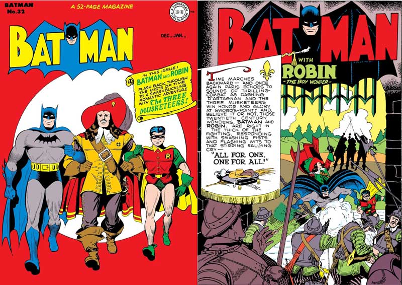 Weil d’Artagnan verletzt wird, übernimmt Batman seine Rolle. Zusammen mit Robin (der auch einen schicken Federhut bekommt) rettet er Lady Constance, damit sie nicht mit einem Juwelengeschenk auf Friedensmission nach London gehen kann. Also segeln die Helden mit den Juwelen nach England und kehrten in Windeseile wieder zurück, als sie erfahren, dass Lady Constance vergiftet werden soll. Da hat sich d’Artagnan wieder erholt und kann mit Batman und Robin die Geliebte retten. Damit ändern sie aber die Geschichte, indem sie ihr ein Happy End verpassen. Allerdings sehen sie kein Problem darin, denn die Rede ist nur noch vom Roman, nicht von der Historie …
