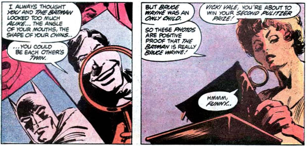 Aber das ist erst der Anfang: Denn Vicky Vale ist als erster Mensch der Welt auf die Idee gekommen, Fotos von Batman und Bruce Wayne zu vergleichen, um festzustellen, dass die beiden ein und dieselbe Person sind! Und auch Dicks Freundin Dala verheißt nichts Gutes …