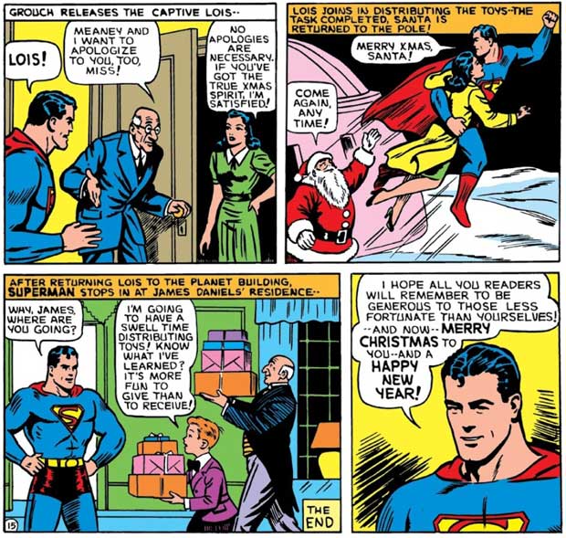 Kaum sind sie wieder zurück in Metropolis, fangen sie Lois wieder ein und dann auch Santas Rentiere. Nachdem Superman sie befreit hat, betäubt Mr. Meaney die Tiere mit einer Gaspistole. Daraufhin fliegt Superman den Schlitten und hilft so Santa beim Verteilen der Geschenke an die Kinder. Anschließend wirft er Meaney durch den eigenen Kamin.