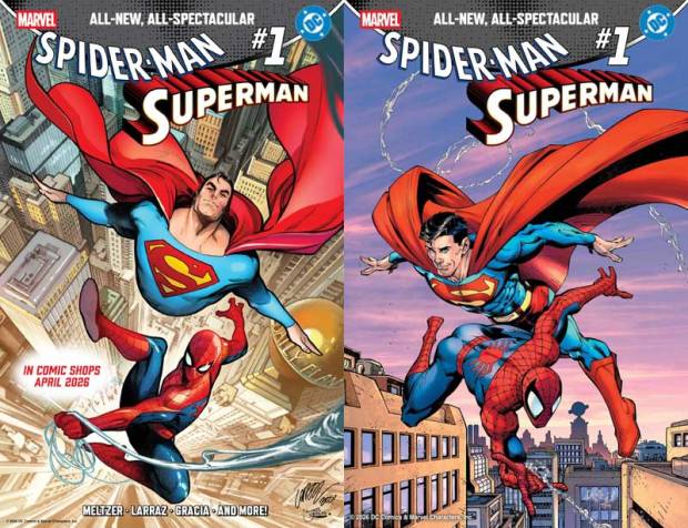 Wie schon berichtet, findet 50 Jahre nach dem ersten Superman-Spider-Man-Crossover ein neues statt – und das doppelt. Am 25. März 2026 soll DCs Superman/Spider-Man #1 erscheinen, nun hat Marvel sein Spider-Man/Superman #1 für den 15. April angekündigt. Die Hauptstory stammt von Autor Brad Meltzer (Identity Crisis) und dem Zeichner Pepe Larraz. Mit dabei sind auch die Erzschurken Lex Luthor und Norman Osborn.