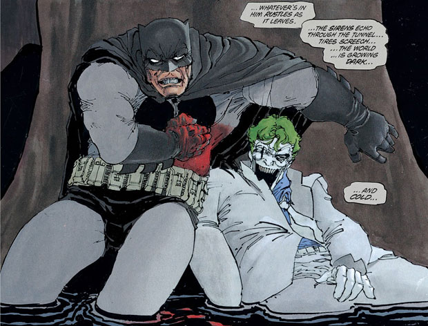 Die Frage von The Dark Knight Returns ist eine, die jeden angeht: Wie kann man in einer so furchtbaren Welt leben, ohne etwas dagegen zu tun? Batman ist bereit, zum Äußersten zu gehen. Und doch schreckt der Mann mit dem Todeswunsch vor dem Mord zurück – auch wenn er dadurch den Tod von Unschuldigen verhindern kann. Der Mord bleibt die letzte Grenze. Niemals darf er sich des Mittels seines Peinigers bemächtigen, sonst wird er wie er und begeht Verrat an seinen Eltern.