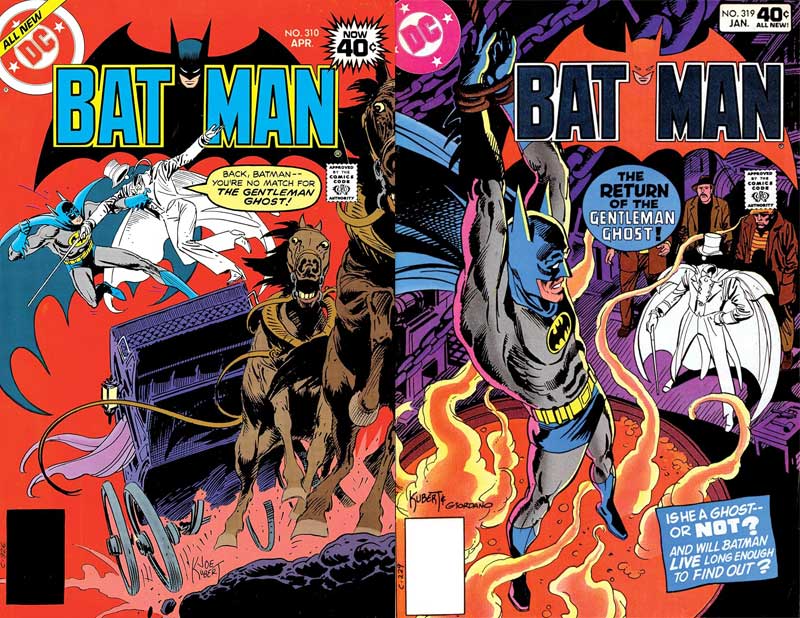 Gentleman Ghost ist ursprünglich ein Gegner von Hawkman. Seinen ersten Auftritt hatte er in Flash Comics #88 (1947), damals noch als „The Ghost“: James „Jim“ Craddock ist ein Juwelendieb, der sich nur als Geist mit Zylinder und Monokel ausgibt. Ende der 70er, als Len Wein einige Golden-Age-Schurken aus der Mottenkiste holte, plagte Craddock auch Batman – und das wurde ein Paradestück der Klischees.