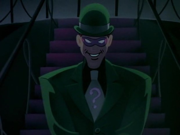 Wie übersetzt man Riddler? In der deutschen Fassung von Batman hält die Welt in Atem, des Spielfilms von 1966, hieß er noch „Rätselknacker“, obwohl er die Rätsel eher aufgab, als sie zu lösen. In der Comicversion hieß er 1969 noch „Mr. Sphinx“ – sehr geistreich (Superman 3, Ehapa Verlag). In Batman: The Animated Series nennt er sich „Rätselkönig“. Das ist zwar ziemlich anmaßend, aber es ist zumindest nah dran am Selbstverständnis des Schurken. Drei Episoden werden ihm gewidmet.