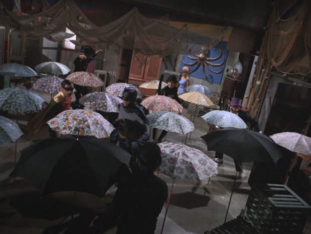 Okay, jetzt reicht’s aber wirklich mit den Schlüsseln, sonst straft mich Google für mein „keyword stuffing“ ab. Daher zur Grundfrage: Was hat der Joker eigentlich vor? Eigentlich geht es ihm nur um einen kleinen, selbstgemachten Schlüssel, mit dem er eine kleine selbstgebastelte Maschine aktiviert und damit Batman und Robin in eine Art Hypnostarre versetzt. Wir erfahren später: Der Joker war mal ein bekannter Hypnotiseur. Wozu aber braucht er einen Schlüssel für eine selbstgebaute Maschine, wenn es doch auch ein einfacher Schalter täte?